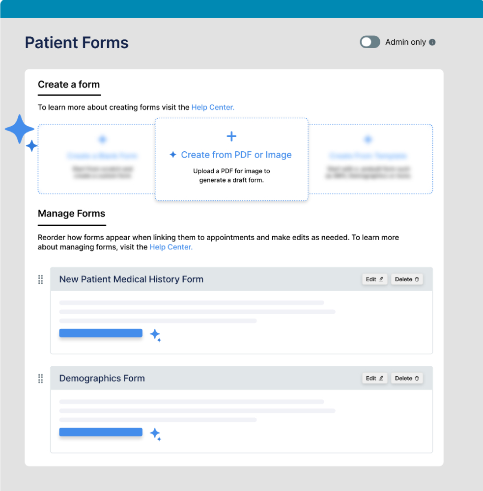 Optimize your intake without the headaches of manual form set-up. Our AI instantly turns old templates into digital forms, upgrading your intake workflows while drastically reducing work for your staff.